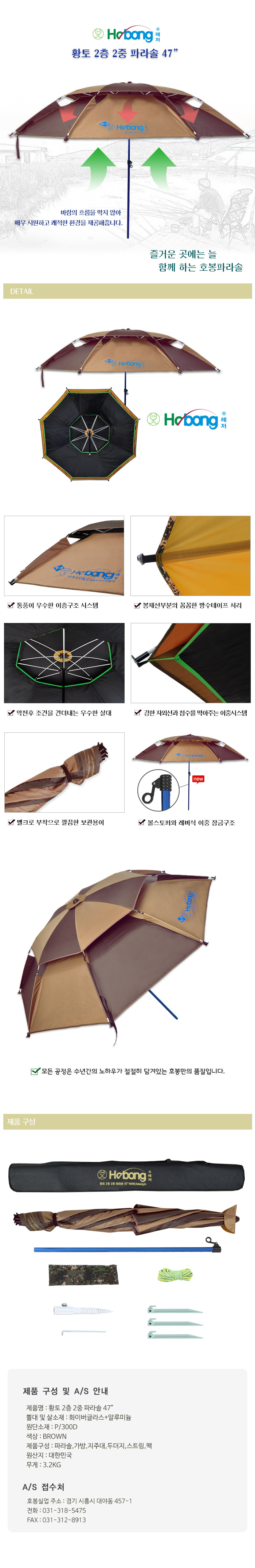 [호봉레저] 황토 2층 2중 파라솔 47"